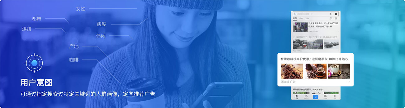 基于消費者的搜索習慣,人群畫像、定位等信息,不同的用戶畫像,系統(tǒng)將自動匹配不同廣告內(nèi)容,千人千面,更加契合用戶的搜索需求
